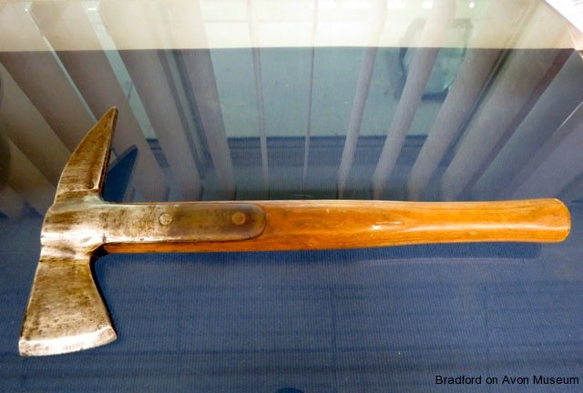 Helmets of the Bradford on Avon Fire Brigade, Wiltshire County Fire Brigade, cap of the County Brigade and a fireman’s axe