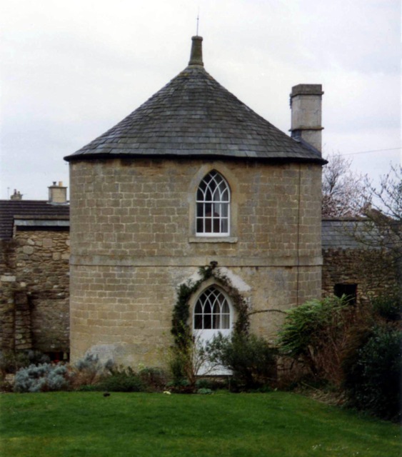 Facing Bearfield Buildings is the Round House, a cylindrical building under a conical roof. This would originally have been a stove house which was used for drying woollen cloths that had been woven in the houses nearby around a central fire. It is now part of a house.