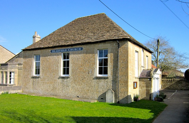 On the right a footpath leads to the back doors of Huntingdon Terrace, with Bearfield Church on the northern side. This is a Congregational chapel that was for a while a member of the Calvinistic-Methodist Countess of Huntingdon’s Connexion. It is almost square with an almost pyramidal roof of stone tiles. On the north side is a small residence and on the east is its schoolroom.The street takes its name from the Countess, although it had existed before, as Bearfield.