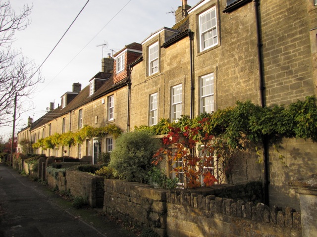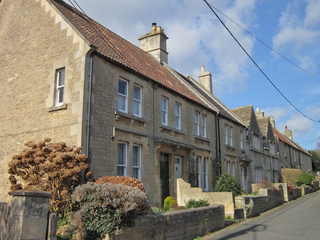 A feature of this route is that, as it ascends the hill to the north, ranks of houses lead off at right angles to follow the contour line: Newtown, Middle Rank, Tory, Winsley Road, Huntingdon Terrace, Bearfield Buildings and Ashley Road. They face towards the south and usually have a footpath at the front, with small gardens on the other side.
